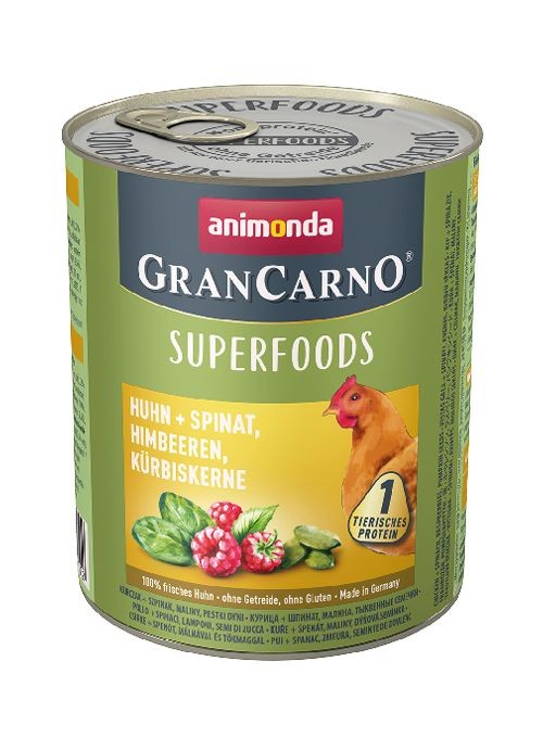 Tento tovar Konzerva GRANCARNO Superfoods 800g – kura, špenán, maliny, tekvicové semienka od výrobcu ANIMONDA, taktiež hľadaný na webe pod kľúčovými kategóriami ako .