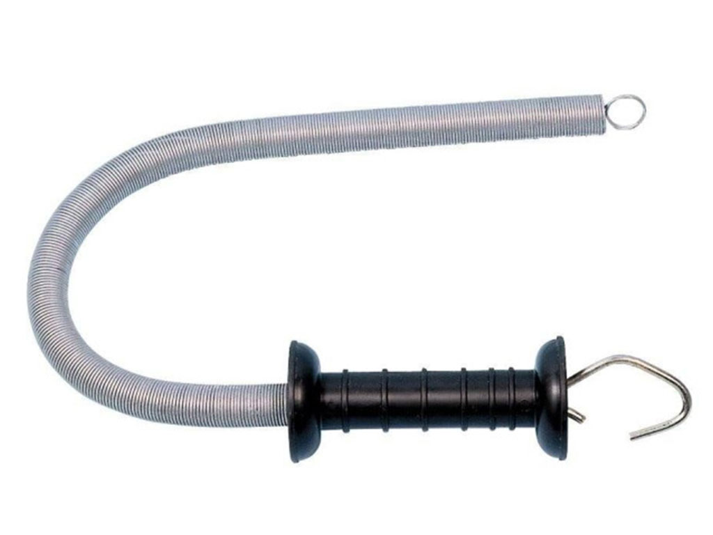 Brána pre elektrický ohradník, s pružinou, max. dĺžka 5 m, s robustnou rukoväťou, s háčikom z nerezovej ocele, jednoduchý spôsob upevnenia.