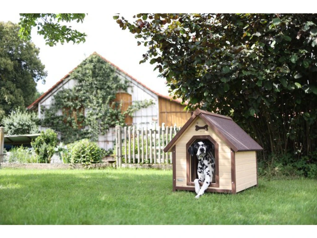 Búda pre psa je vyrobená z lakovaného dreva a poskytuje stabilitu a ochranu pred nepriazňou počasia.