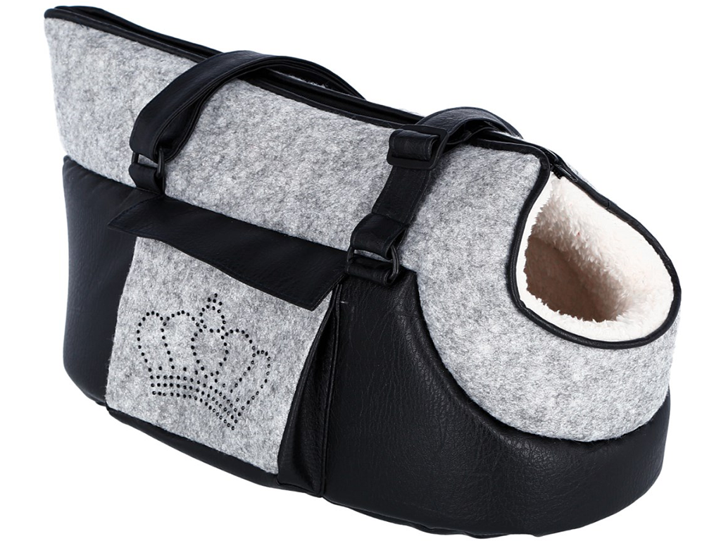 Materiál tašky je navrhnutý pre maximálne pohodlie a odolnosť. Mäkká plyšová podšívka zaisťuje príjemnú prepravu pre Vášho maznáčika, zatiaľ čo kvalitný poťah z plsti a umelej kože s jemnými drahokamovými detailmi dodáva taške nielen eleganciu, ale aj pevnosť. Vnútorný poťah je možné ľahko prať v práčke na 30°C, čo zaisťuje jednoduchú údržbu a dlhú životnosť. Tento materiál je ideálnou voľbou pre majiteľov, ktorí hľadajú kombináciu štýlu, komfortu a praktických vlastností.