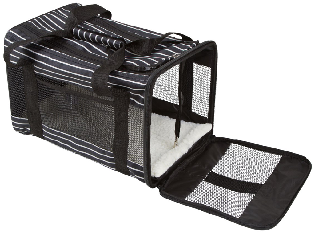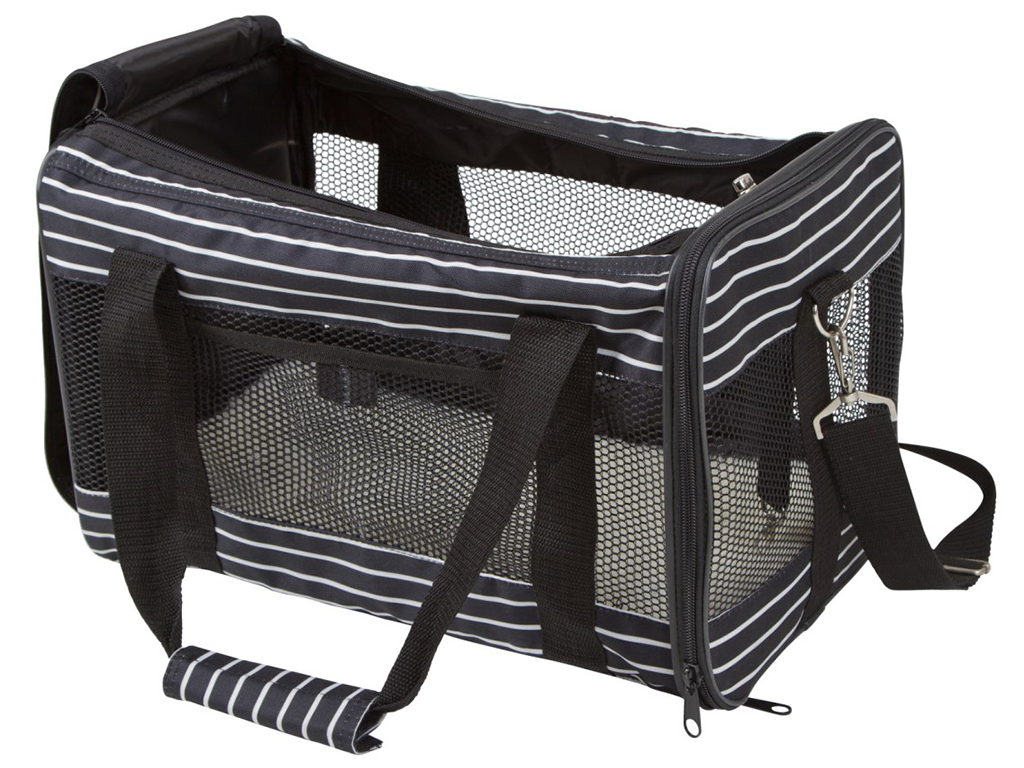 Cestovná taška pre psov/mačky do 9 kg, zosilnená a polstrovaná základňa, snímateľný vnútorný poťah, rozmery 40x26x28 cm. Objavte to úplné pohodlie pre Vášho maznáčika počas cestovania! Máme pre Vás pohodlnú cestovnú tašku pre psa či mačku, ktorá zaistí príjemné cestovanie pre Vášho štvornohého maznáčika. Túto praktickú cestovnú tašku je možné otvoriť hore alebo po stranách. Zosilnená a polstrovaná základňa poskytuje extra pohodlie a vďaka vysoko kvalitnej sieťovanej vložke je zaistená dobrá cirkulácia vzduchu a výhľad. Pohodlný prenos umožňuje rukoväť, navyše s nastaviteľným odnímateľným ramenným popruhom. Cestovanie s Vašim maznáčikom už bude iba radosťou bez prepravných komplikácií.