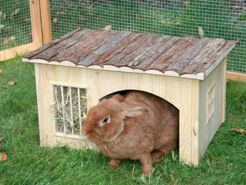Drevený domček pre králiky a ďalšie hlodavce z odolného prírodného dreva s jasľami na seno, rozmery 42×34, 5×27 cm. Ak hľadáte kvalitný drevený domček pre svojho králika, ktorý by ste mohli umiestniť do klietky alebo jeho výbehu, potom máme presne to, čo hľadáte. Tento atraktívny domček poskytne útulné zázemie aj úkryt, navyše je vybavený praktickými jaslami, kde si bude králik pochutnávať na chutnom sene. Váš maznáčik ocenia súkromie v domčeku, či už budete mať domček umiestnený vo vonkajšom výbehu, alebo u Vás doma.