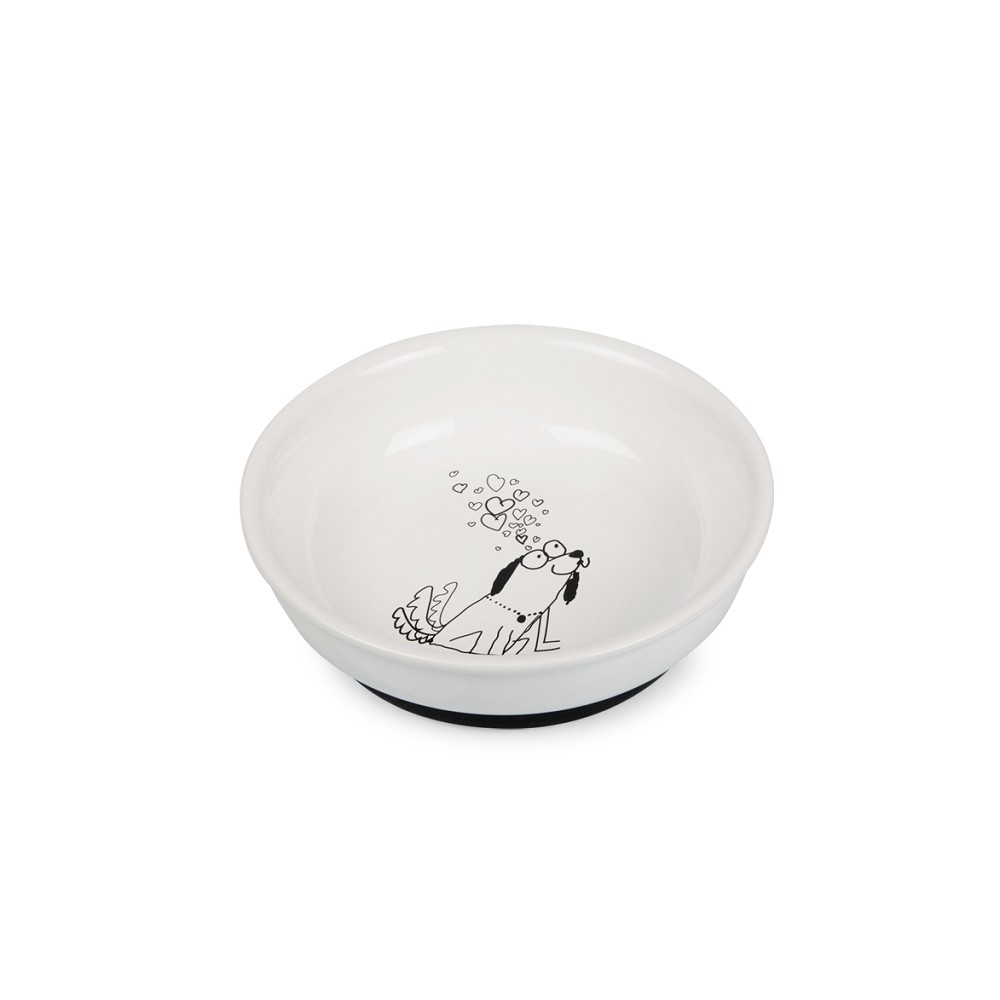 Keramické misky, Misky a zásobníky na krmivo pre psy, Psy - Keramický tanierik biely so psíkom, protišmykový