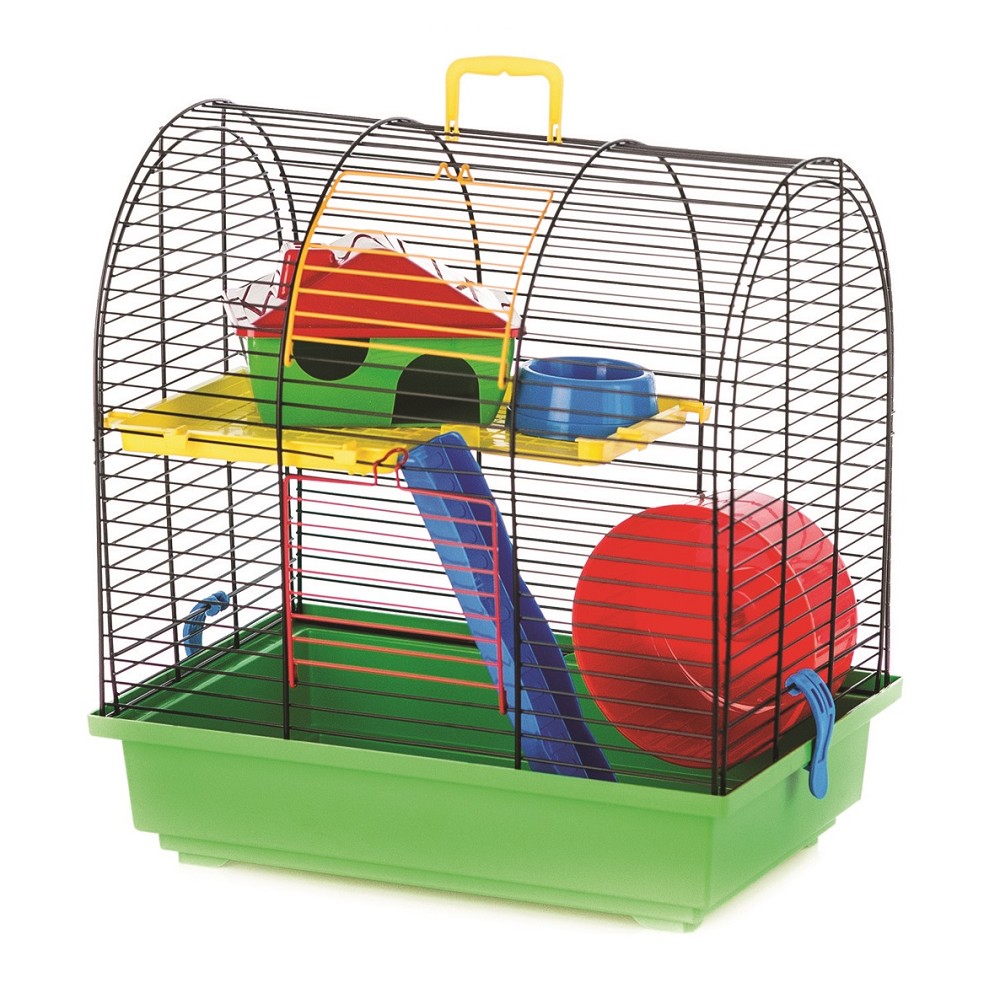 Súčasťou klietky je bohaté príslušenstvo (1 x domček, 1 x poschodie, 1 x mištička, 1 x kolotoč, 1 x rebrík).