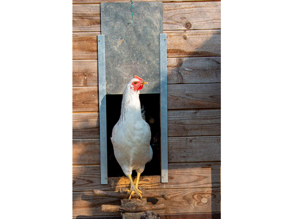 Automatické otváranie a zatváranie kurína s dvierkami s rozmermi 23×34 cm. Ide o kompletný automatický systém ovládania pohybu dvierok so svetelným senzorom, časovačom a funkciou núdzového otvárania dvierok. Integrovaný LCD displej zaisťuje jednoduché nastavenie a zmenu časovania v prípade potreby. Vhodný až do teploty -30°C.
