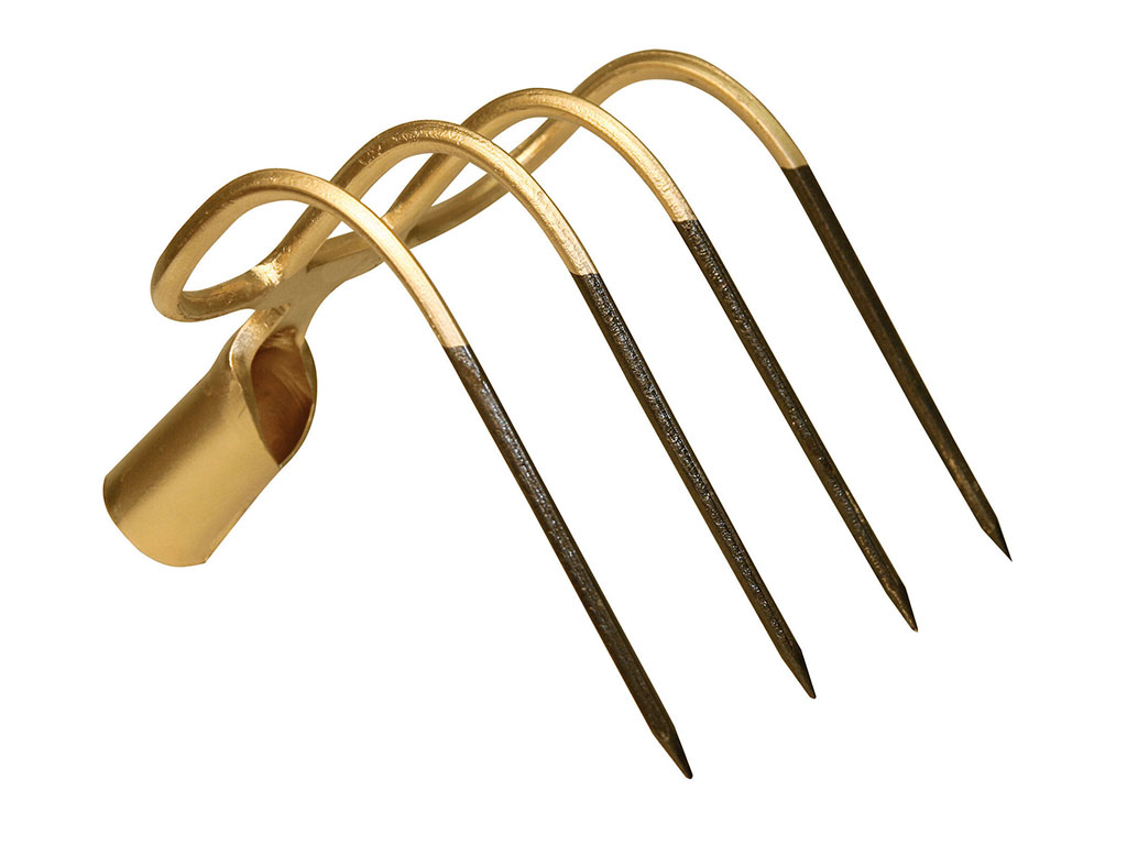 Ručne kovaný kopáč4 hroty, bez násady, vyrobené z kvalitnej ocele, priemer puzdra 38 mm na násadurozmery (dĺžka x šírka) 21 x 20 cm.