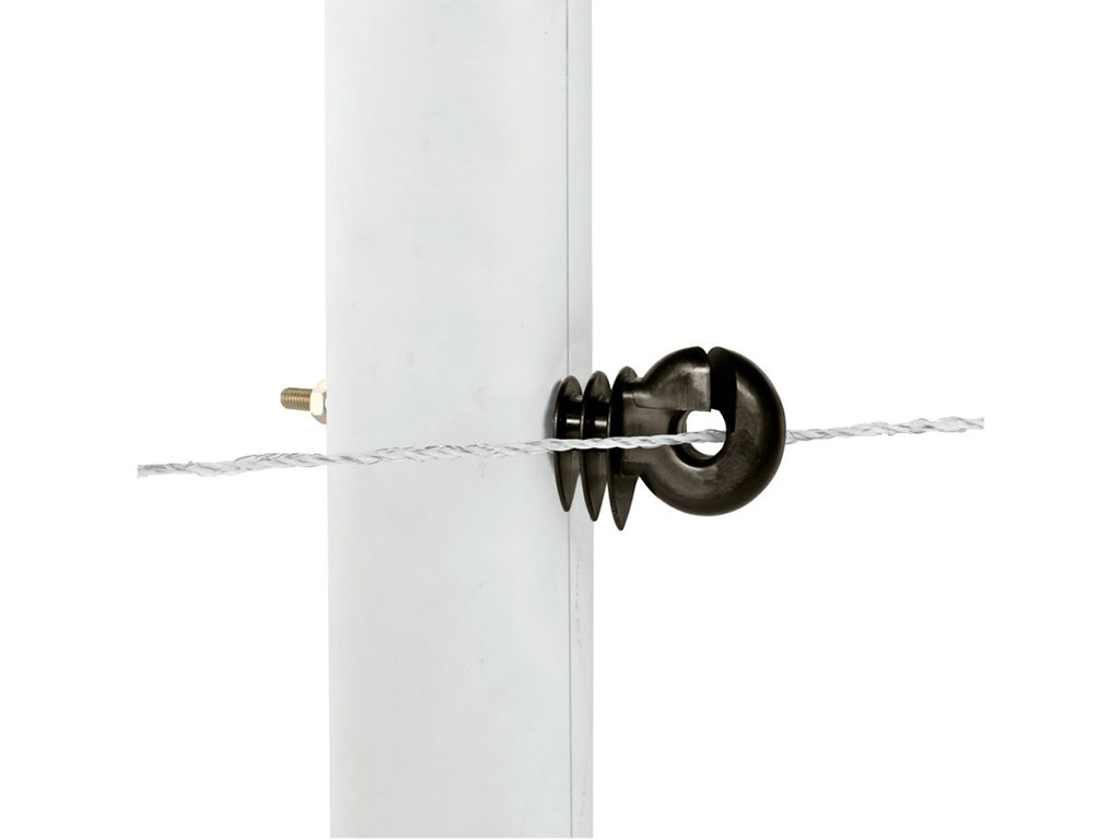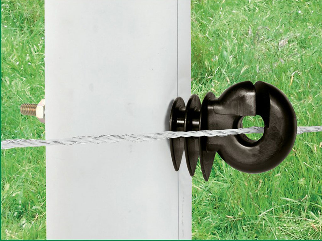 Kruhový izolátor pre elektrický ohradník, určený pre ohradníkový drôt, lanko alebo pásku, metrický závit M6x80 mm. Objavte ideálneho pomocníka na vytvorenie elektrického ohradníka pre Váš chov! Vďaka tomuto kruhovému izolátoru bude vytvorenie elektrického ohradníka podstatne jednoduchšie. Ohradníkové izolátory sú nevyhnutnou súčasťou každého elektrického ohradníka, pretože minimalizujú prenosové straty. Izolátor je vyrobený z kvalitného plastu, je opatrený krátkou pozinkovanou podperou s priemerom 6 mm s metrickým závitom a súčasťou balenia sú 2 matice. Je vhodný na použitie ohradníkového drôtu, lanka aj pásky do šírky 10 mm.