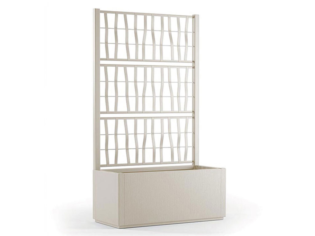 Kvetináč s mriežkou,  drenážnym dnom,  na vonkajšie použitie, z polypropylénu, farba krémovo bielas objemom 80l, rozmery 80x36x142cm.