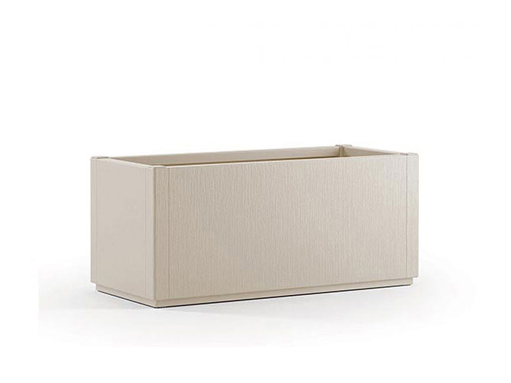 Kvetináč s drenážnym dnom, na vonkajšie použitie, z polypropylénu, farba krémovo biela, s objemom 80l, rozmery 80x36x35cm.