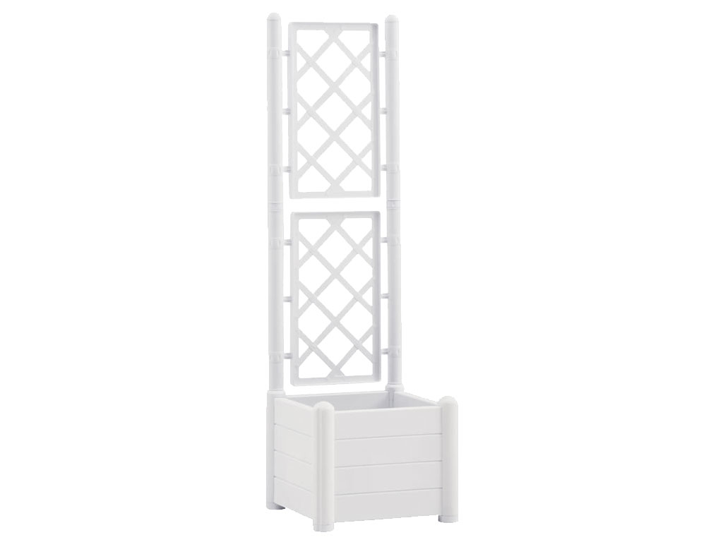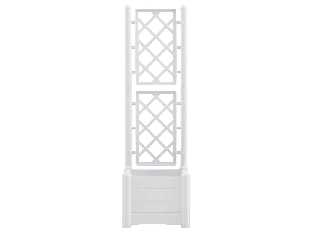 Kvetináč s mriežkou, s drenážnym dnom, na vonkajšie použitie, z polypropylénu, farba biela, s objemom 30l, rozmery 43x43x142cm.