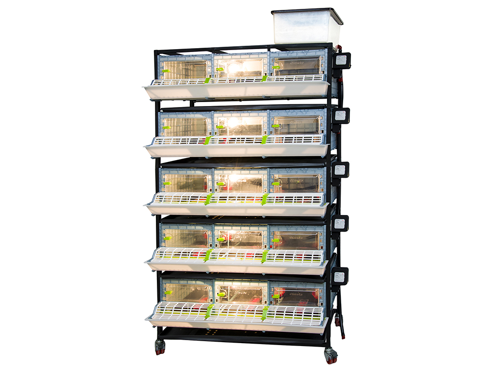 Odchovňa hydiny vhodná k chovu pre 200 až 225ks kurčiat s patentovanou technológiou Comfortplast s rozmermi 104 x 60 x 196 cm. Jedná sa o 5 poschodovú klietku s 3 oddiely, ktoré sú vybavené ohrevnou lištou s nastaviteľným termostatom a výstupom na žiarovku, krmítkami s mriežkou proti plytvaniu krmiva, napájačkami s prívodom vody z 20 litrového zásobníka.