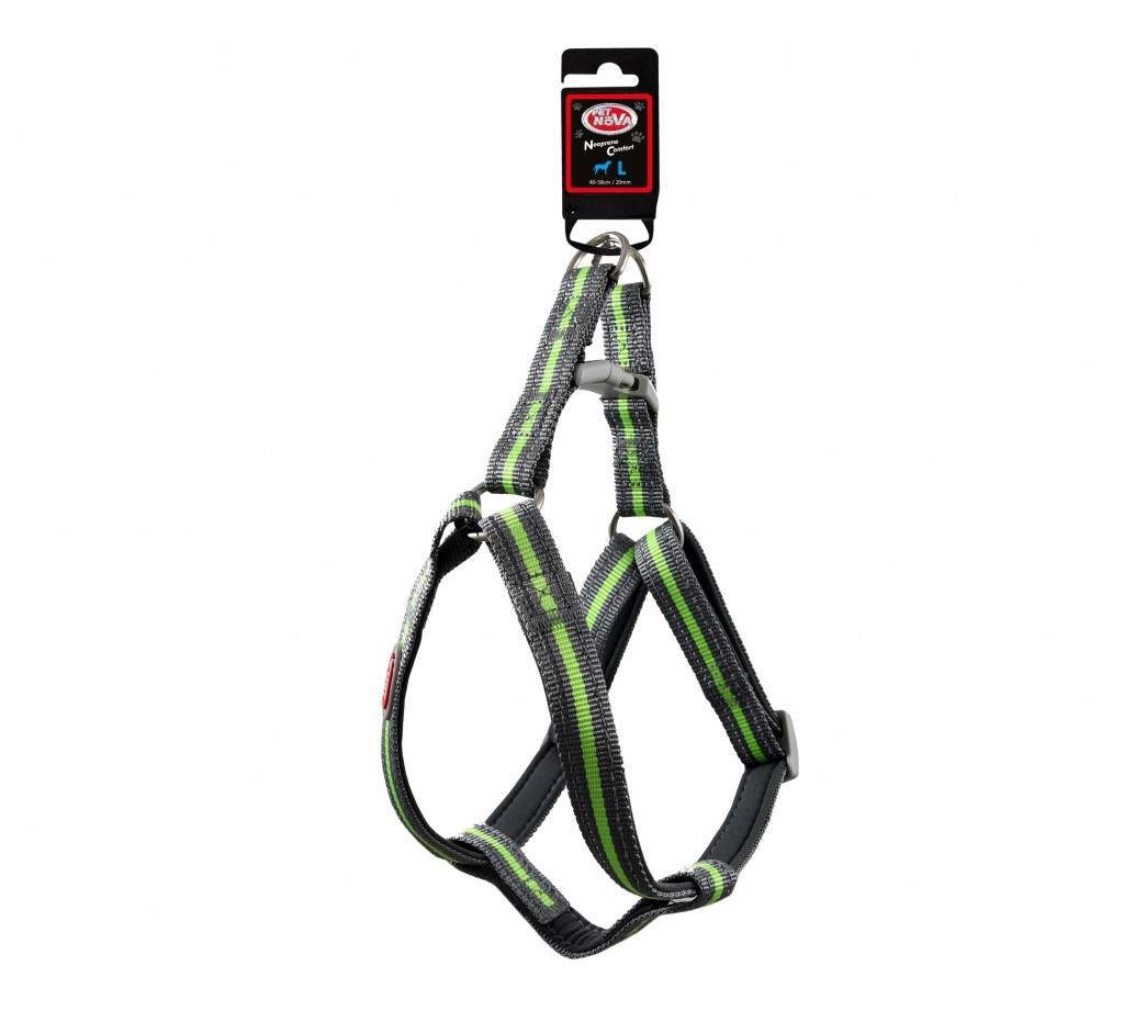 Nastaviteľný nylonový postroj s neoprénovou podsadou NEOPRÉN COMFORT veľkosť S – 2,0 cm (41-58cm), reflexný šedý.