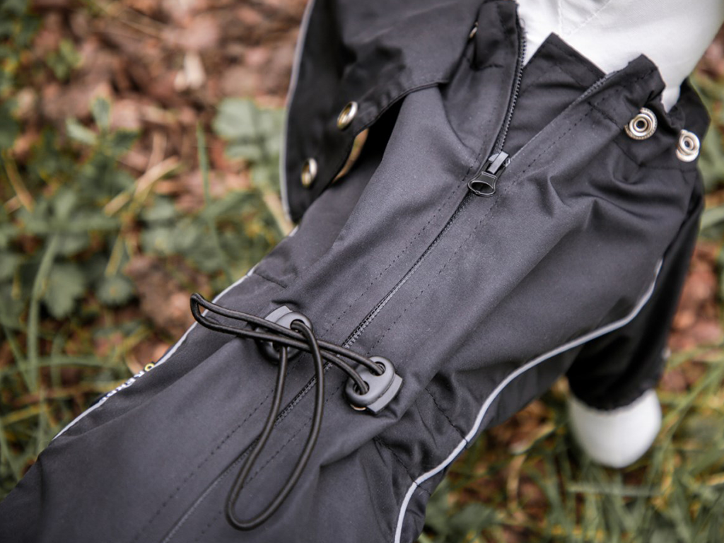 Táto štýlová pláštenka pre Vášho maznáčika má tunelovú sťahovaciu šnúrku v oblasti brucha a krku, ktorá zaisťuje dokonalé uchytenie pláštenky. Pláštenka má navyše vysoký, samostatne odnímateľný golier, ktorý ešte viac chráni pred silným vetrom a chladom. Váš pes je tak chránený od hlavy až ku každej labke. Oblieknutie pláštenky Vášmu miláčikovi je veľmi jednoduché a zvládnete ho behom okamihu – Váš pes bude pripravený na vychádzku raz dva! Ochranná pláštenka má reflexné lemovanie, ktoré zaisťuje lepšiu viditeľnosť v tme – či už idete na vychádzku skoro ráno alebo vo večerných hodinách.