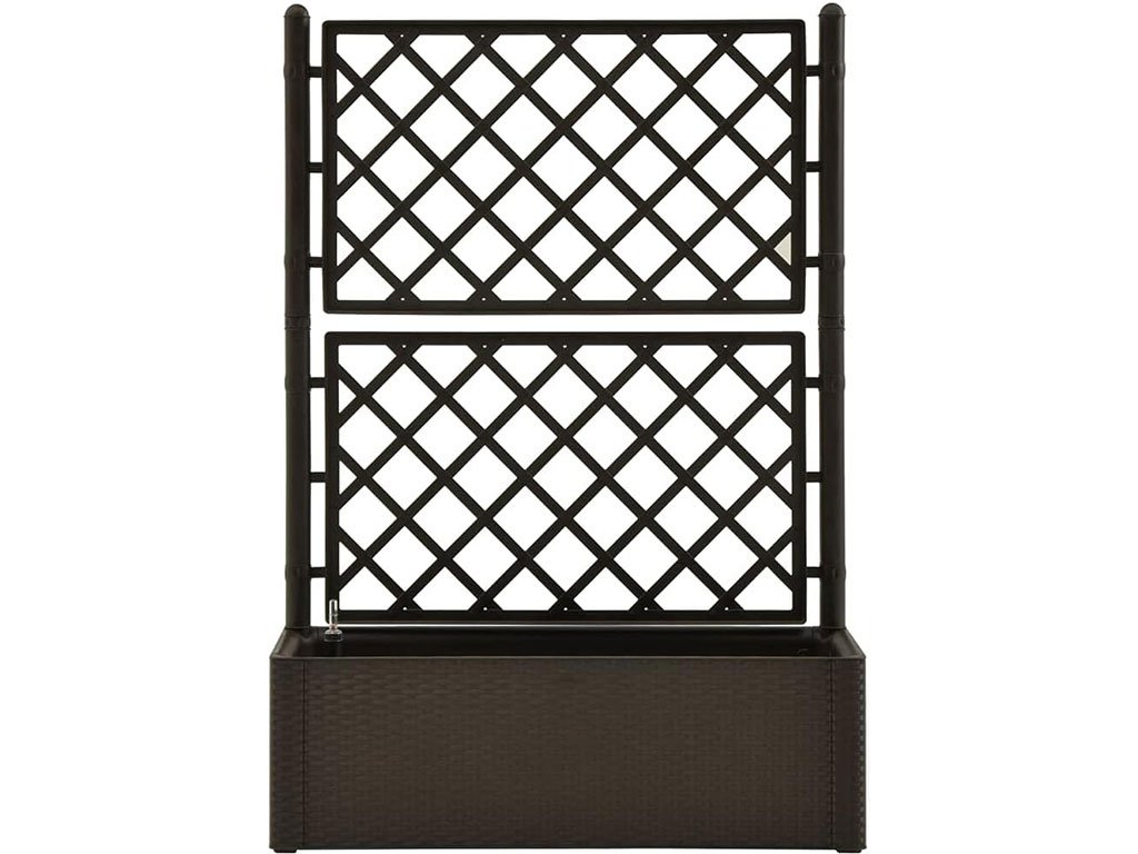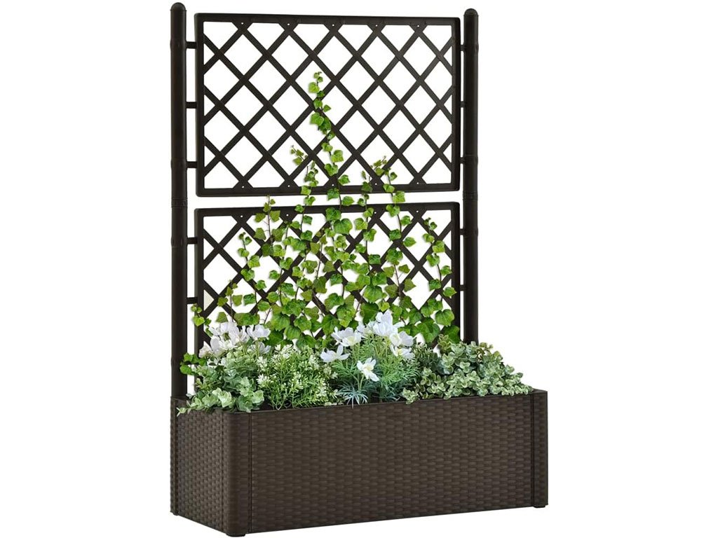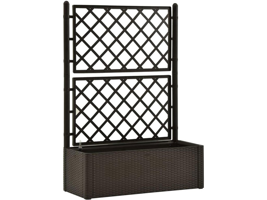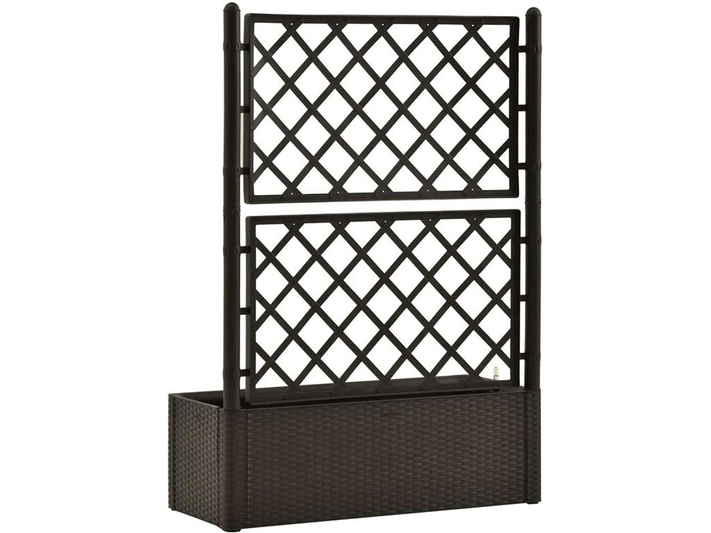 Samozavlažovací kvetináč s mriežkou, pre vnútorné aj vonkajšie použitie, s ukazateľom hladiny vody, z polypropylénu, farba moka, s objemom 90l, rozmery 100x43x142cm.