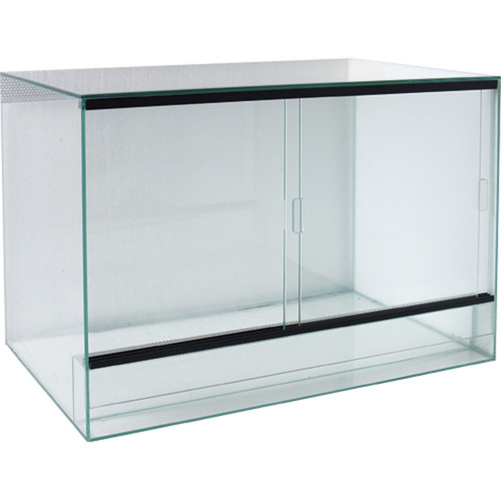 Celosklenené terárium so šúpacími dvierkami a vetracou mriežkou.