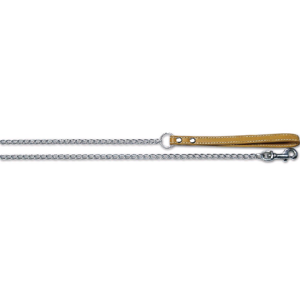 Klasické retiazkové vodítko s koženou rukoväťou, ktorá veľmi dobre padne do ruky.