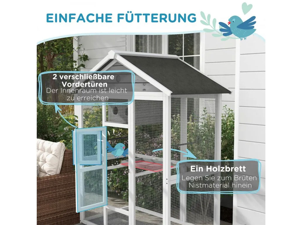 ✨ Voliéra pre vtáky PAWHUT D10-070V03GY, 112x68x154 cm, zakúpite u nás online v eshope – TOP CENA☝