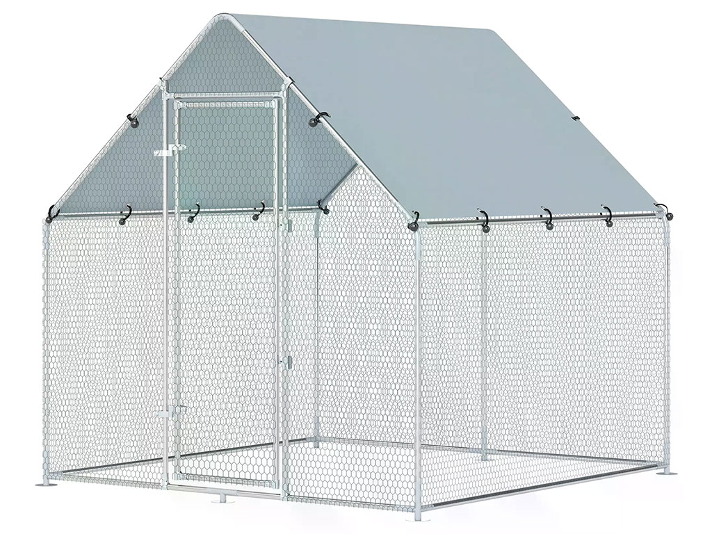 Výbeh pre hydinu vhodný pre 4-6 sliepok, robustná konštrukcia, ochranná plachta, dvojité zámky, rozloha 4 m2, 200x200x200 cm. Hľadáte dostatočne veľký a bezpečný výbeh pre Váš chov sliepok? Objavte priestranný výbeh pre sliepky s rozlohou 4m2, ideálny pre 4–6 sliepok, ktorý bude perfektným domovom pre Váš chov. Tento robustný vonkajší výbeh je vyrobený z pozinkovanej ocele a drôteného pletiva s plastovým poťahom, ktorý spoľahlivo chráni vaše sliepky a odoláva každodennému používaniu aj poveternostným vplyvom. Výbeh je vybavený kvalitnou strieborne potiahnutou Oxfordskou tkaninou, ktorá je vodeodolná a odolná voči UV žiareniu, takže sú vaše sliepky v suchu, bezpečí a pohodlí po celý rok. Dvojité zámky zabraňujú úteku sliepok, a vďaka veľkým vstupným dverám je ľahké vojsť do výbehu, doplniť kŕmenie alebo vyčistiť priestor. Tento výbeh je možné tiež perfektne kombinovať s kurínom (nie je súčasťou balenia) a vytvoriť tak ideálny domov pre váš chov.