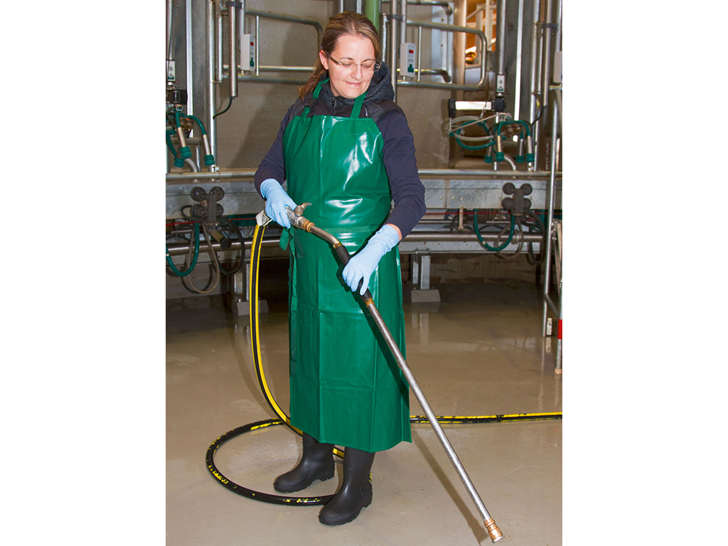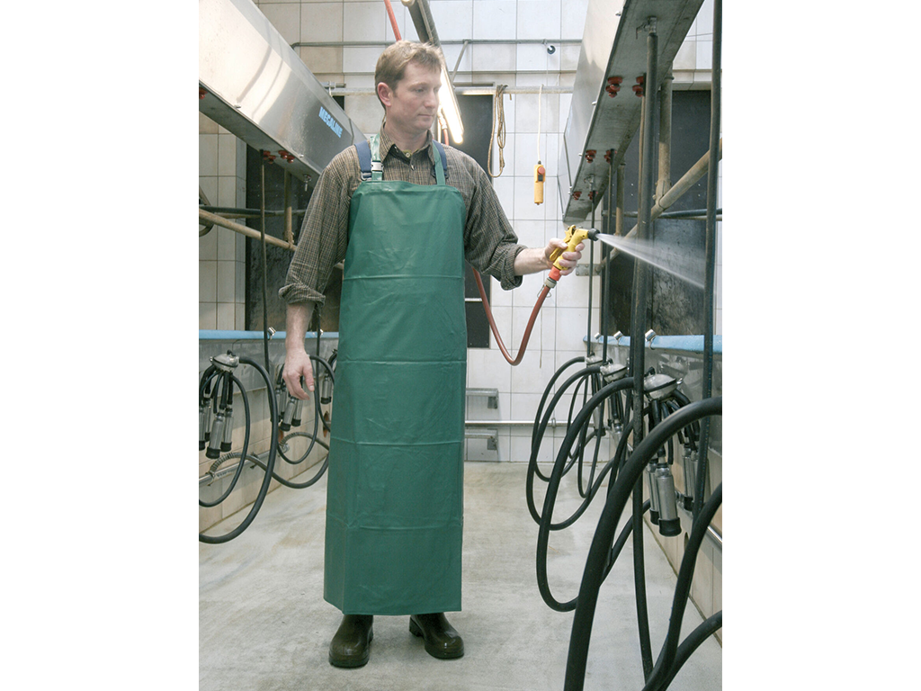 Zástera na dojenie a umývanie, vhodná aj pre poľnohospodárske, domáce a záhradné práce, vodeodolný materiál proti vlhkosti a vode, extrémne odolná proti roztrhnutiu a prasknutiu, vysoká teplotná odolnosť -25°C až +70°C, praktické zapínanie pri krku cez nastaviteľnú pracku, rozmer 125×100 cm.