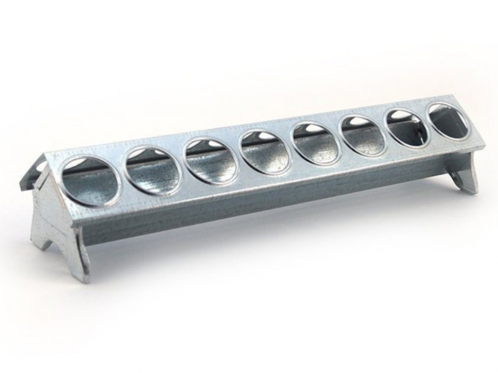 Žľabové kŕmidlo pre kurčatá, prepelice CF 032.10 – 30cm, kruhové otvory, 16 miest, pozinkované